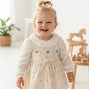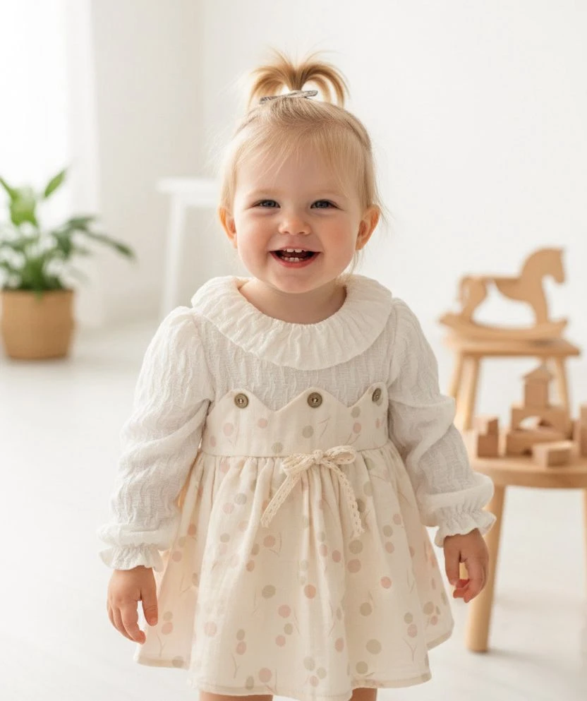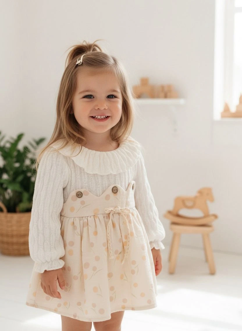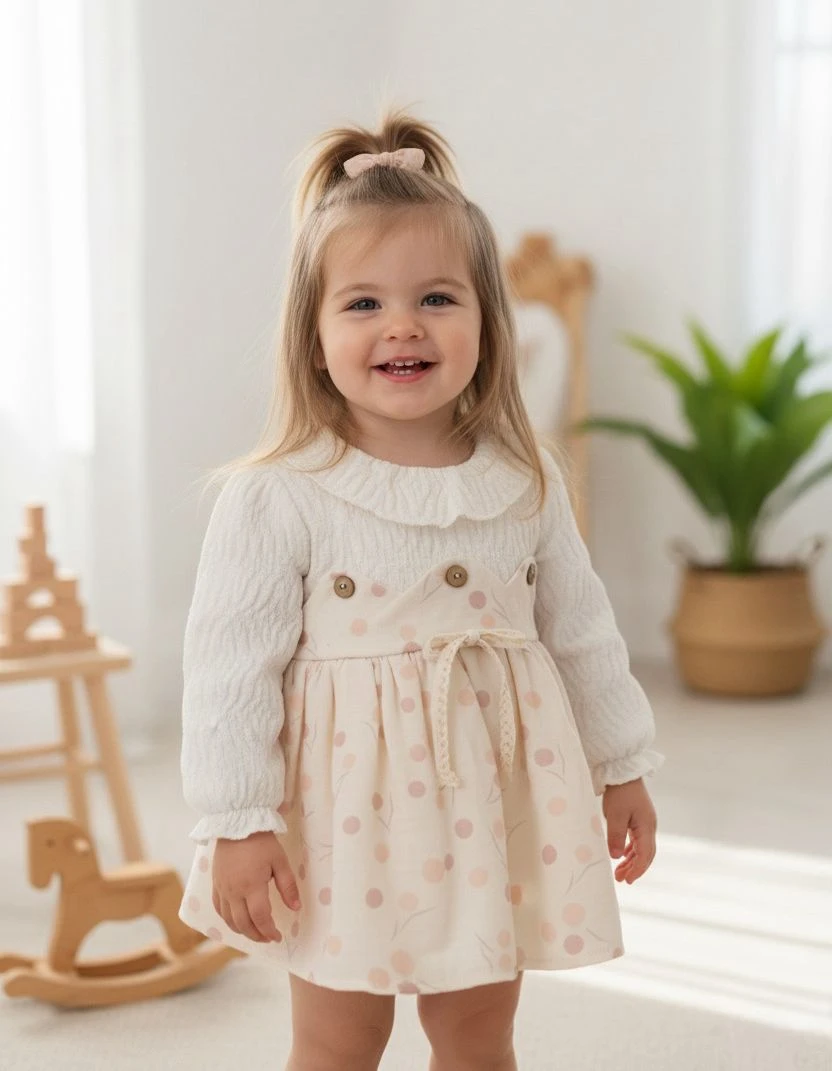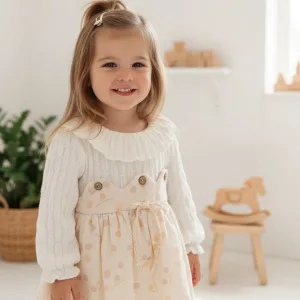 A perfect blend of comfort and classic elegance for your baby girl! This adorable tunic dress combines a warm, textured top with a sweet, printed skirt, making it ideal for the cooler months and everyday charm.