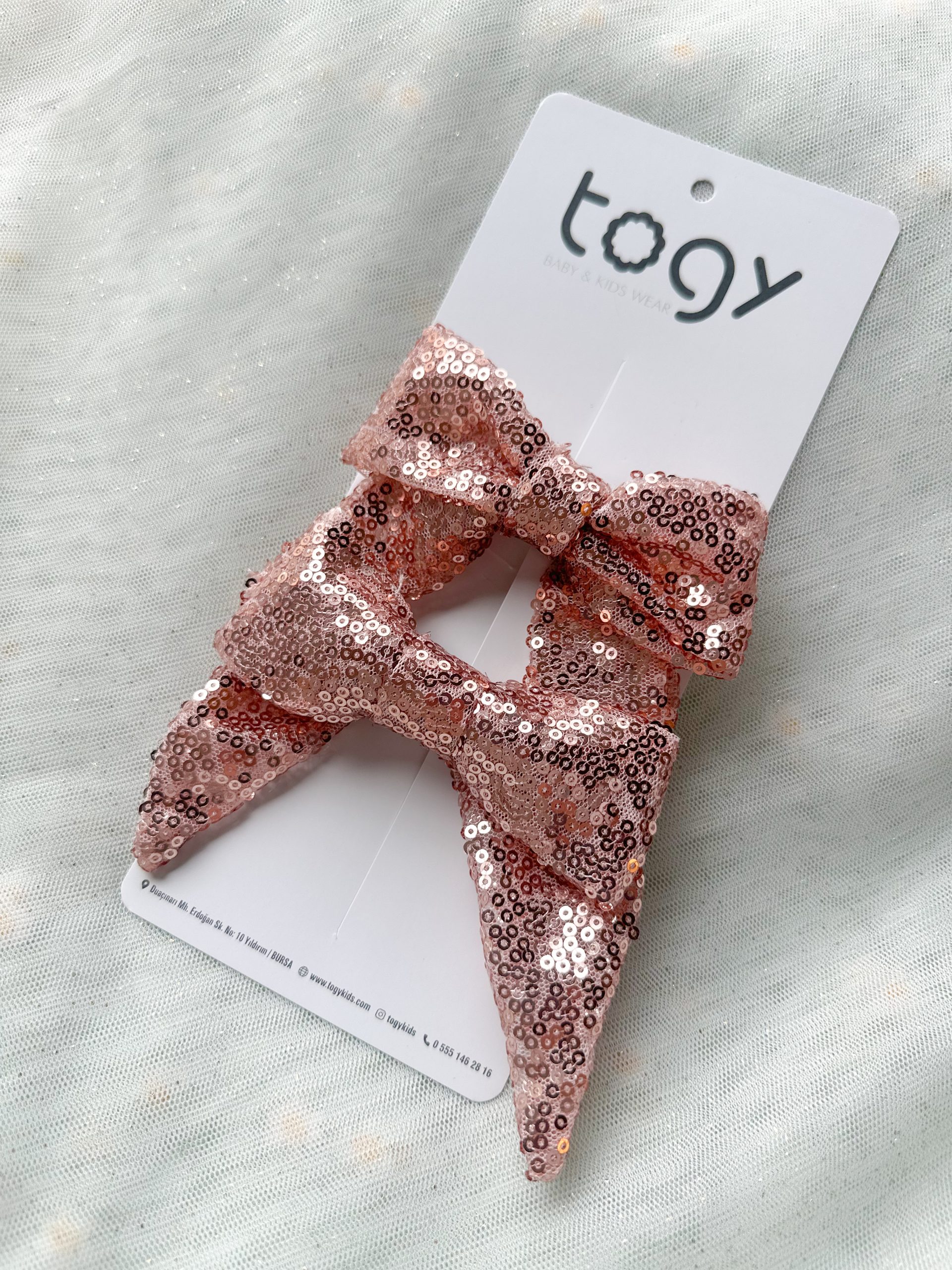 Add a touch of sparkle to your little one’s style! Designed by the renowned brand Togy, these sequined bow hair clips are the perfect accessory for both everyday wear and special occasions like birthdays or weddings.