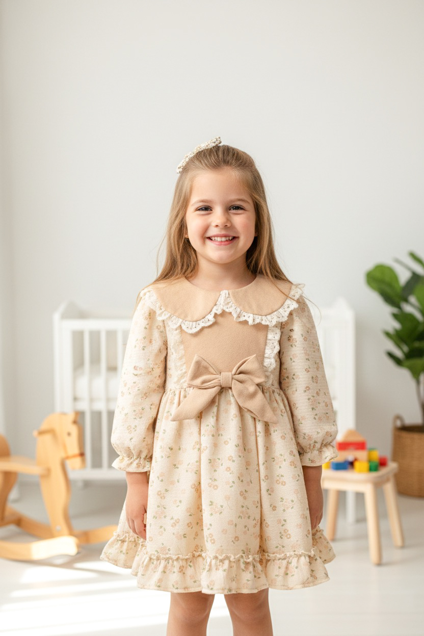 This charming dress brings together cozy warmth and whimsical elegance, making it a perfect choice for your little girl’s special moments, holiday gatherings, and stylish everyday adventures.