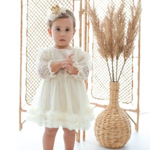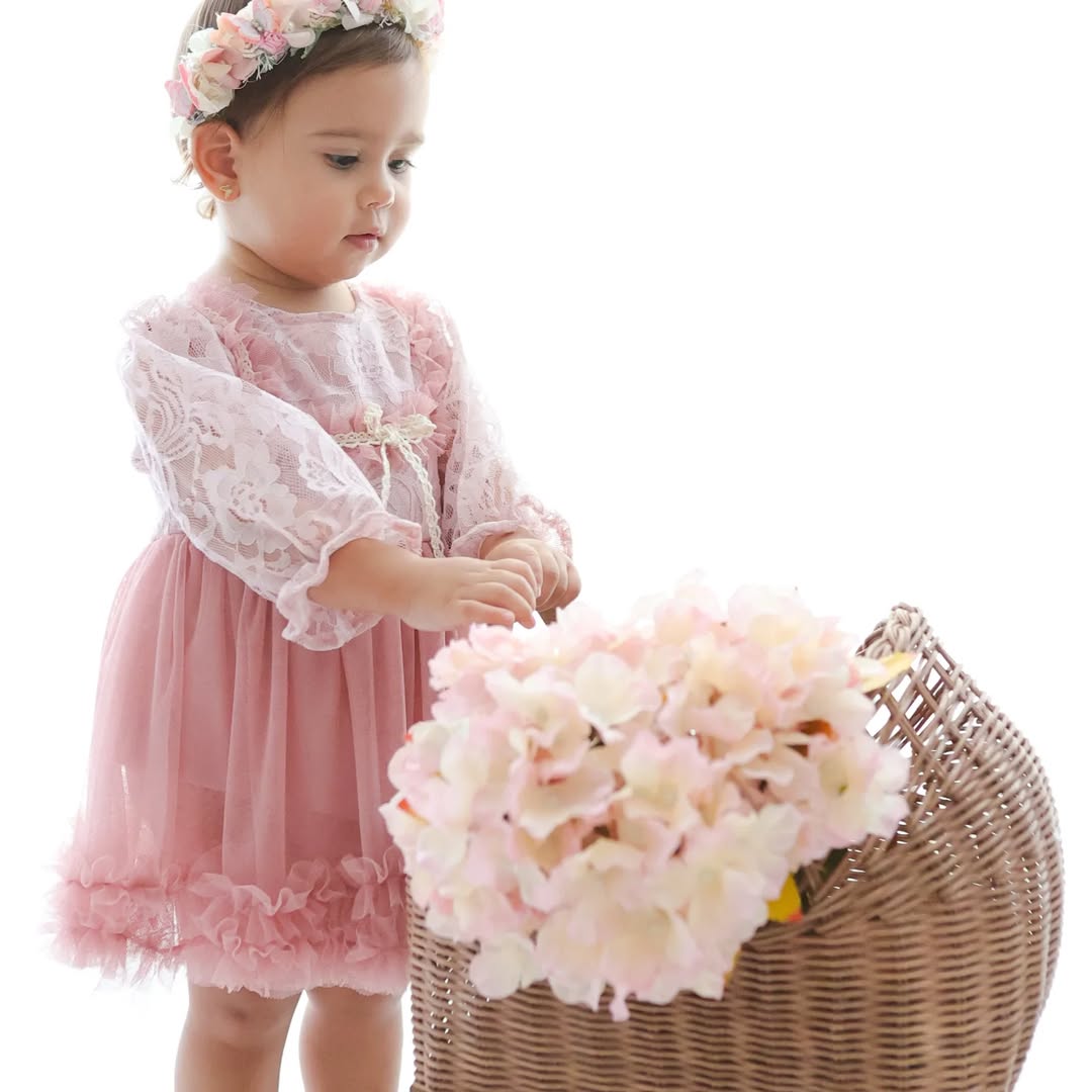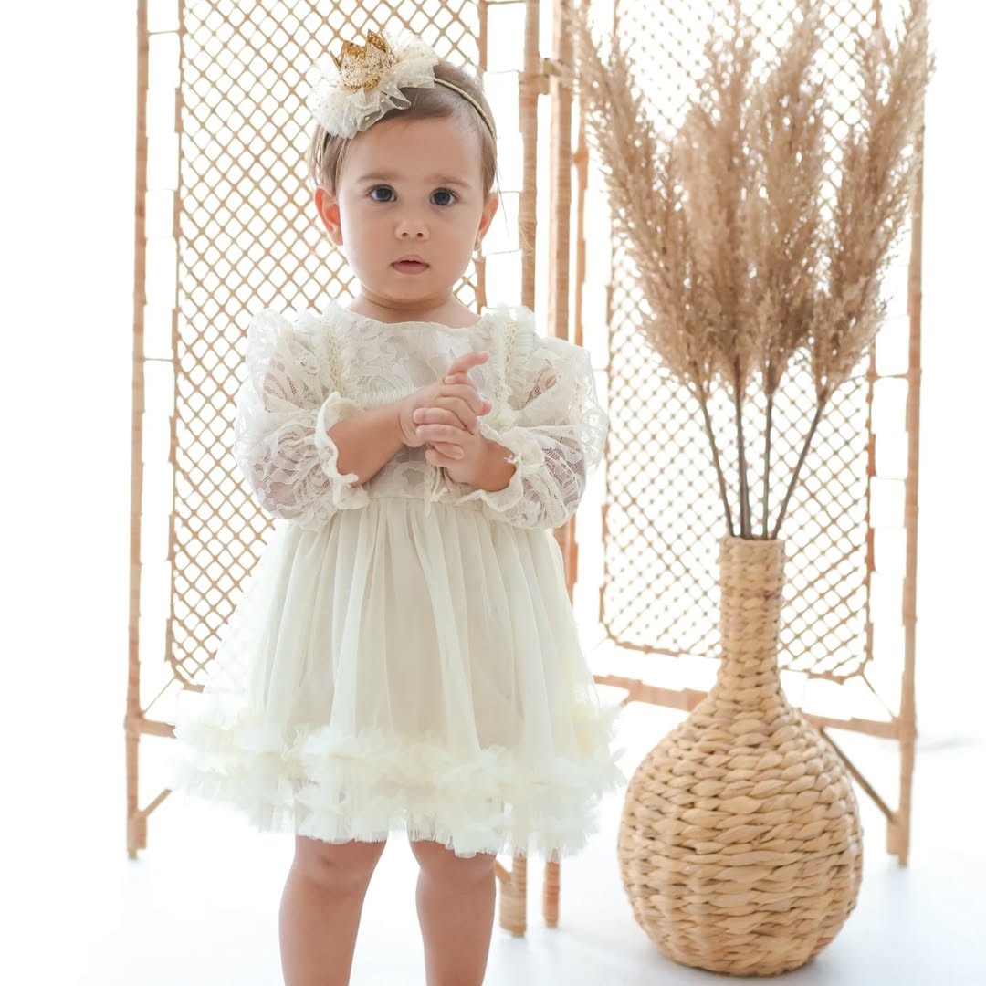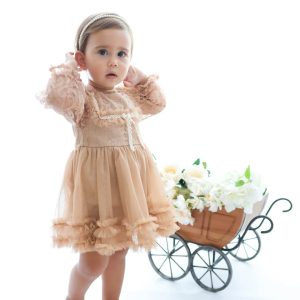 Bu Pudra Pembesi (Ten Rengi/Nude) elbise tulum, bebeğinizin zarafetini ve masumiyetini bir peri masalından fırlamışçasına yükseltecek! Dantel ve katmanlı tül detaylarıyla doğum günleri, vaftiz törenleri, fotoğraf çekimleri ve özel günler için mükemmel bir seçimdir.