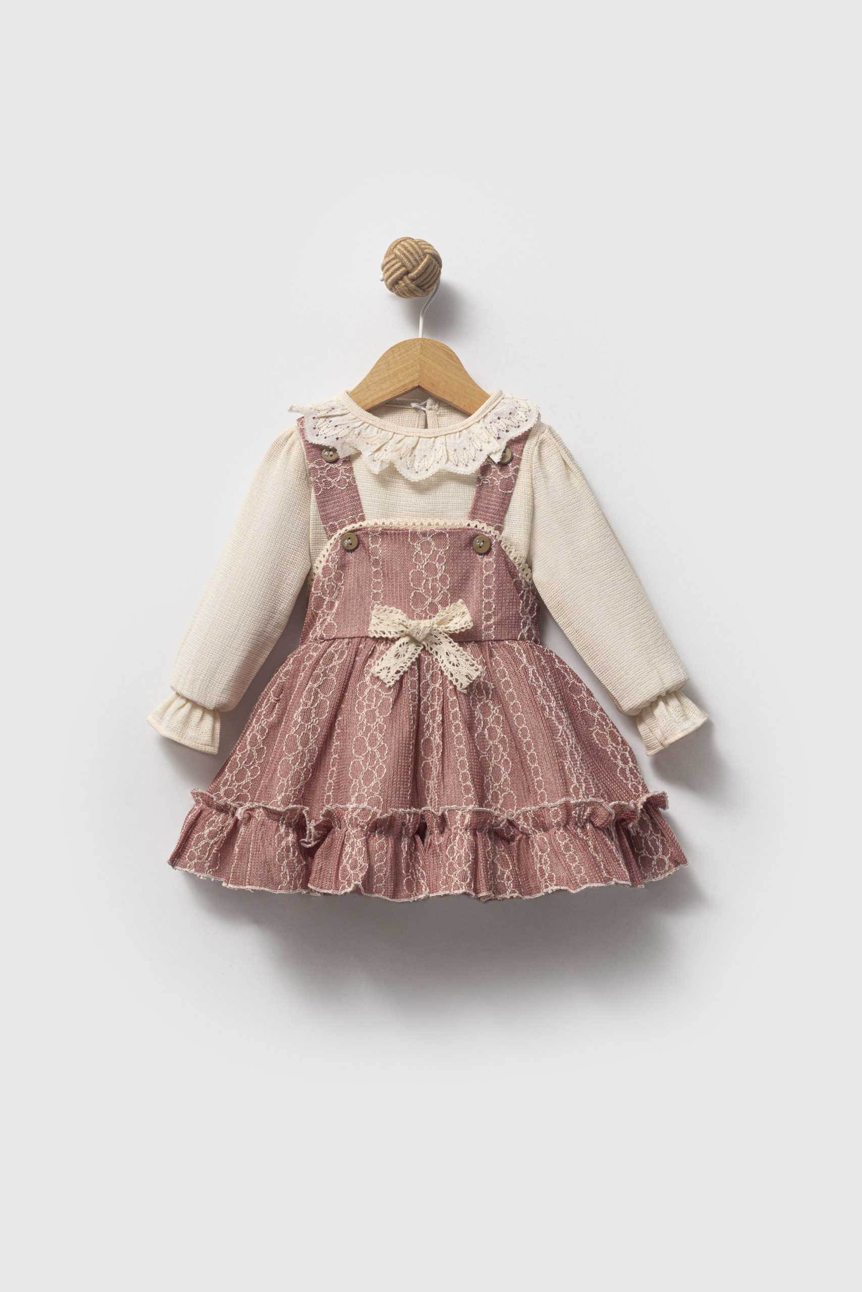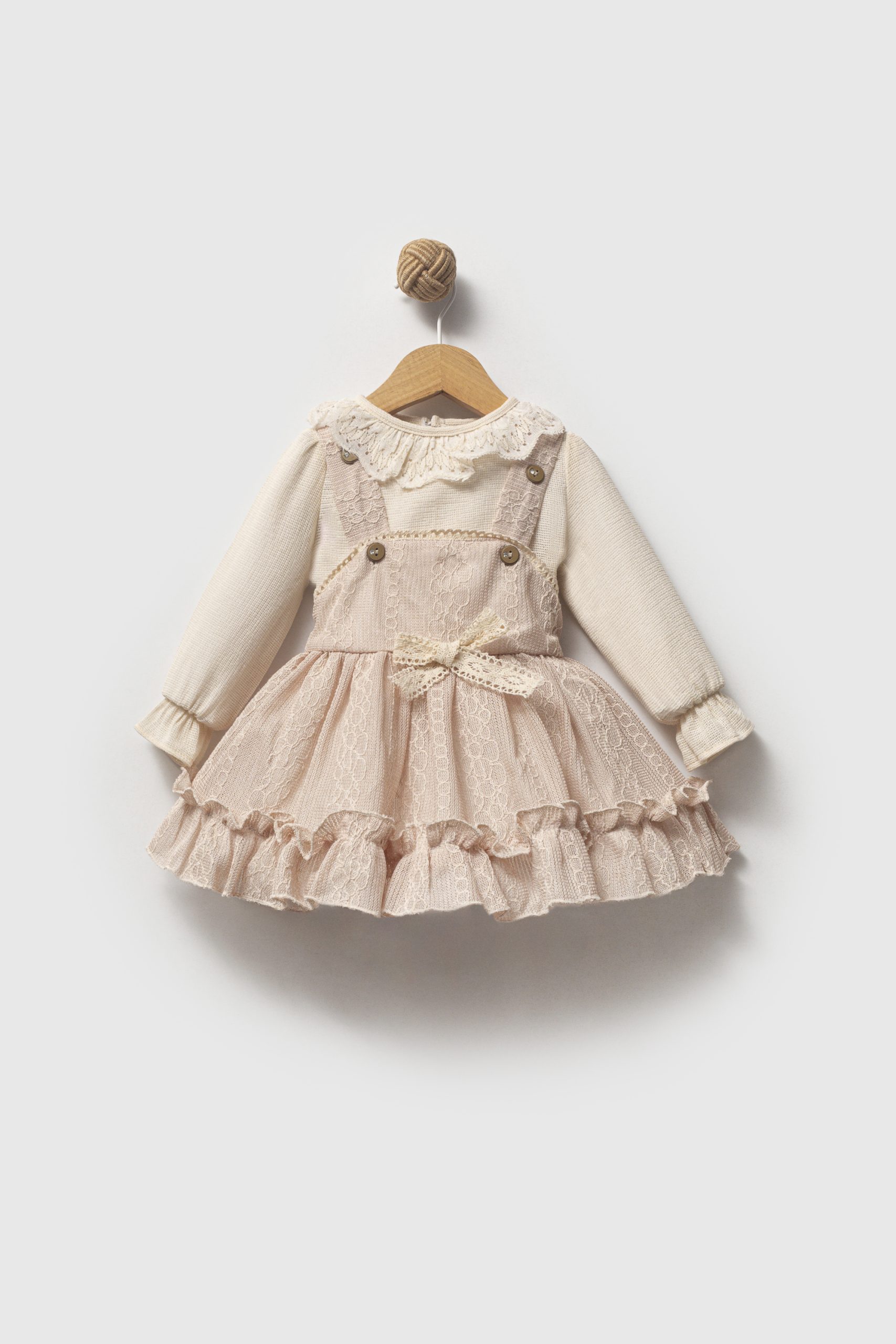 Bu sevimli bebek elbisesi, yumuşak uzun kollu üst miniklerin şıklığını tamamlar. Günlük kullanımda ya da özel günlerde rahatlıkla tercih edilebilir.