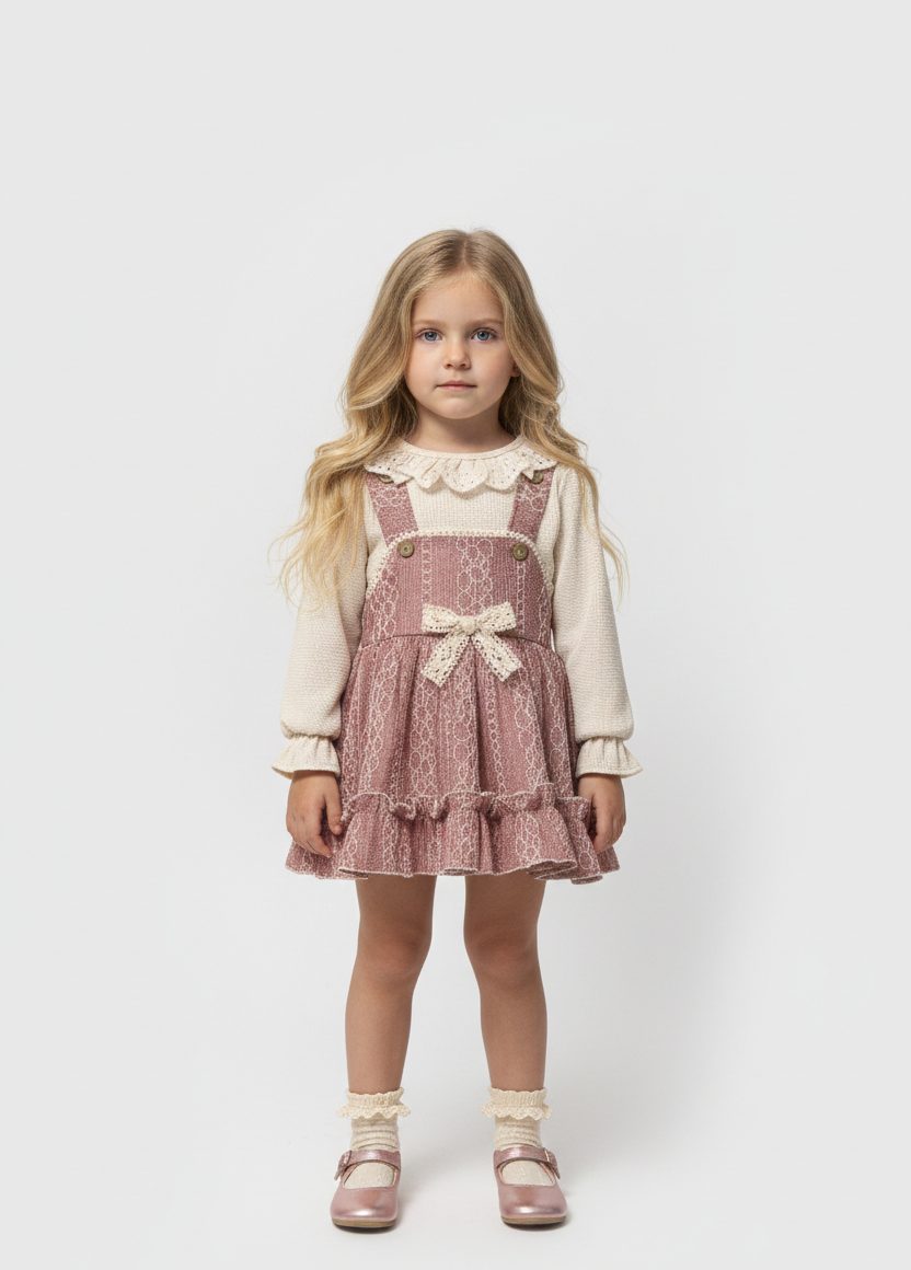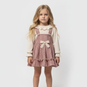 Küçük prenseslerin gardırobuna zarafet katacak bu özel tasarım, hem günlük şıklık hem de özel günler için mükemmel bir seçim! Vintage esintili tasarımıyla dikkat çeken bu takım, konfor ve şıklığı bir arada sunuyor